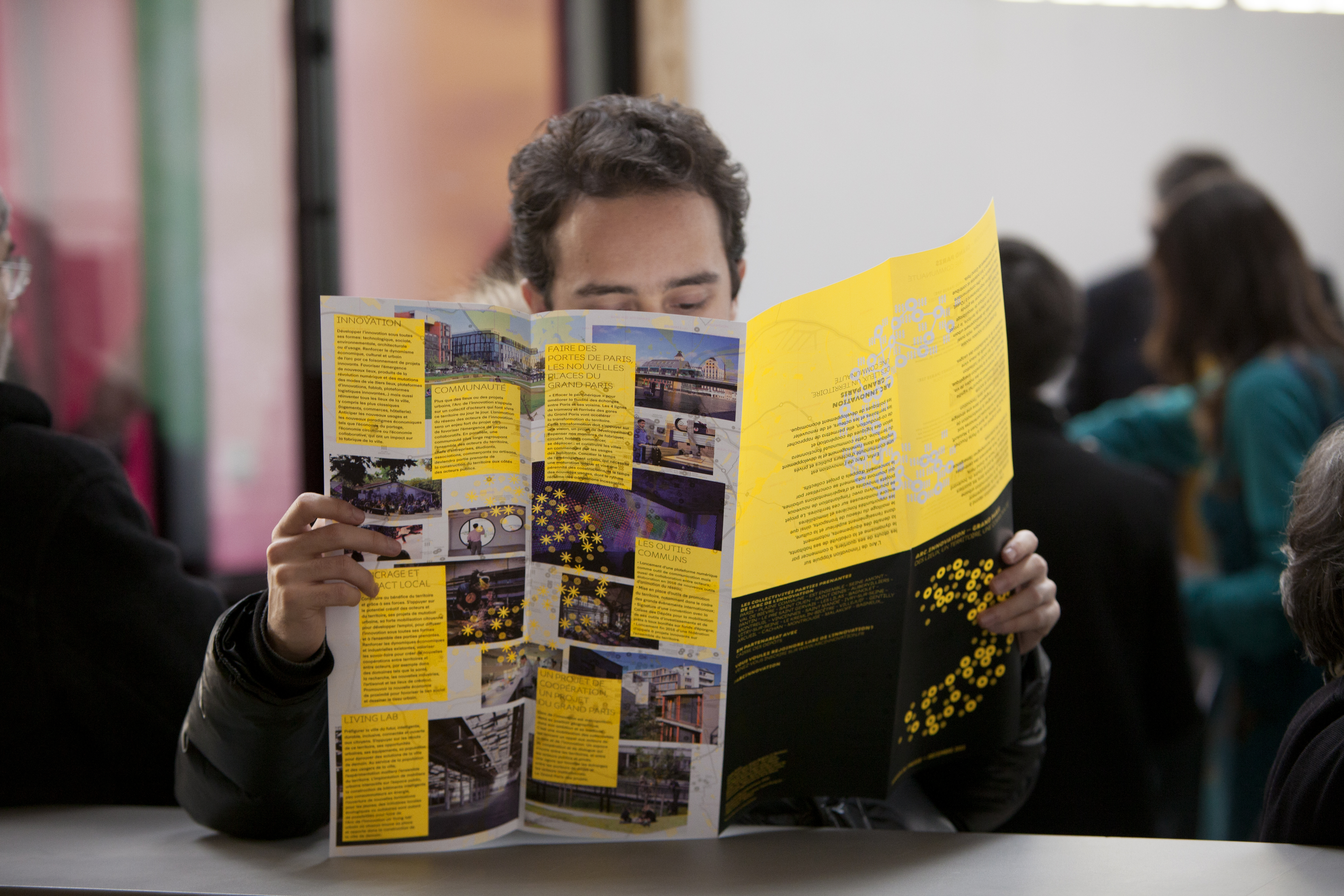 L’Est parisien et ses environs fourmillent d’entreprises innovantes. La ville de Paris et les communes limitrophes ont souhaité valoriser ce nouvel arc économique. La carte des implantations révèle naturellement un C inversé que nous adoptons comme signe fédérateur. L’identité visuelle de l’Arc de l’innovation s’appuie principalement sur une typographie sur mesure et la génération paramétrique d’une myriade de signes, à partir d’un programme crée spécifiquement. Le message est simple : un même territoire, une communauté d’acteurs singuliers.