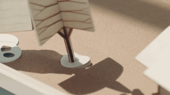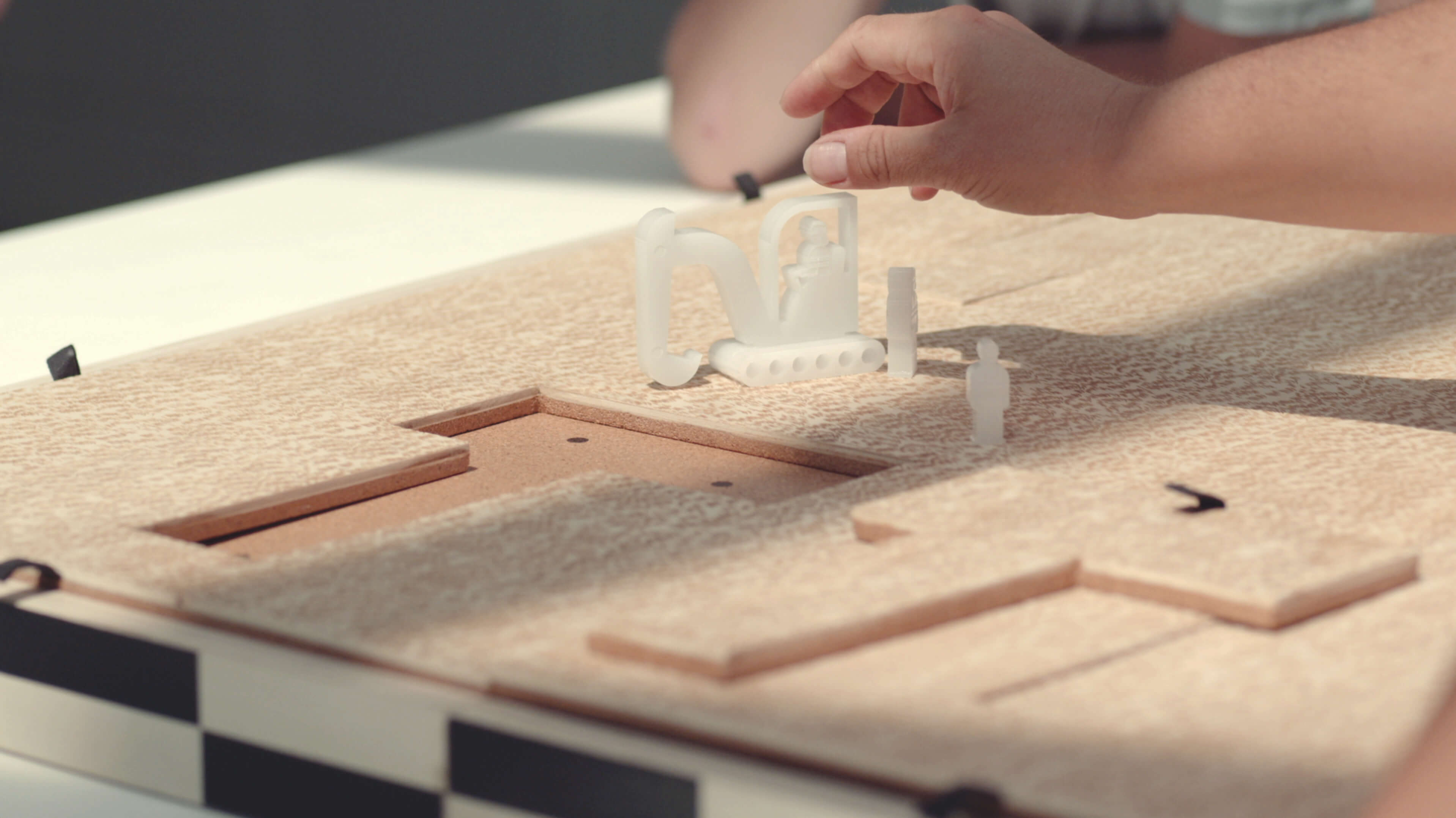 La maquette doit pouvoir être facilement déployée. Composé de deux parties aimantées, le grand plateau d’1m2 se referme sur lui-même pour former sa propre boîte de transport et de stockage. Une deuxième boîte rassemble et protège tous les accessoires.