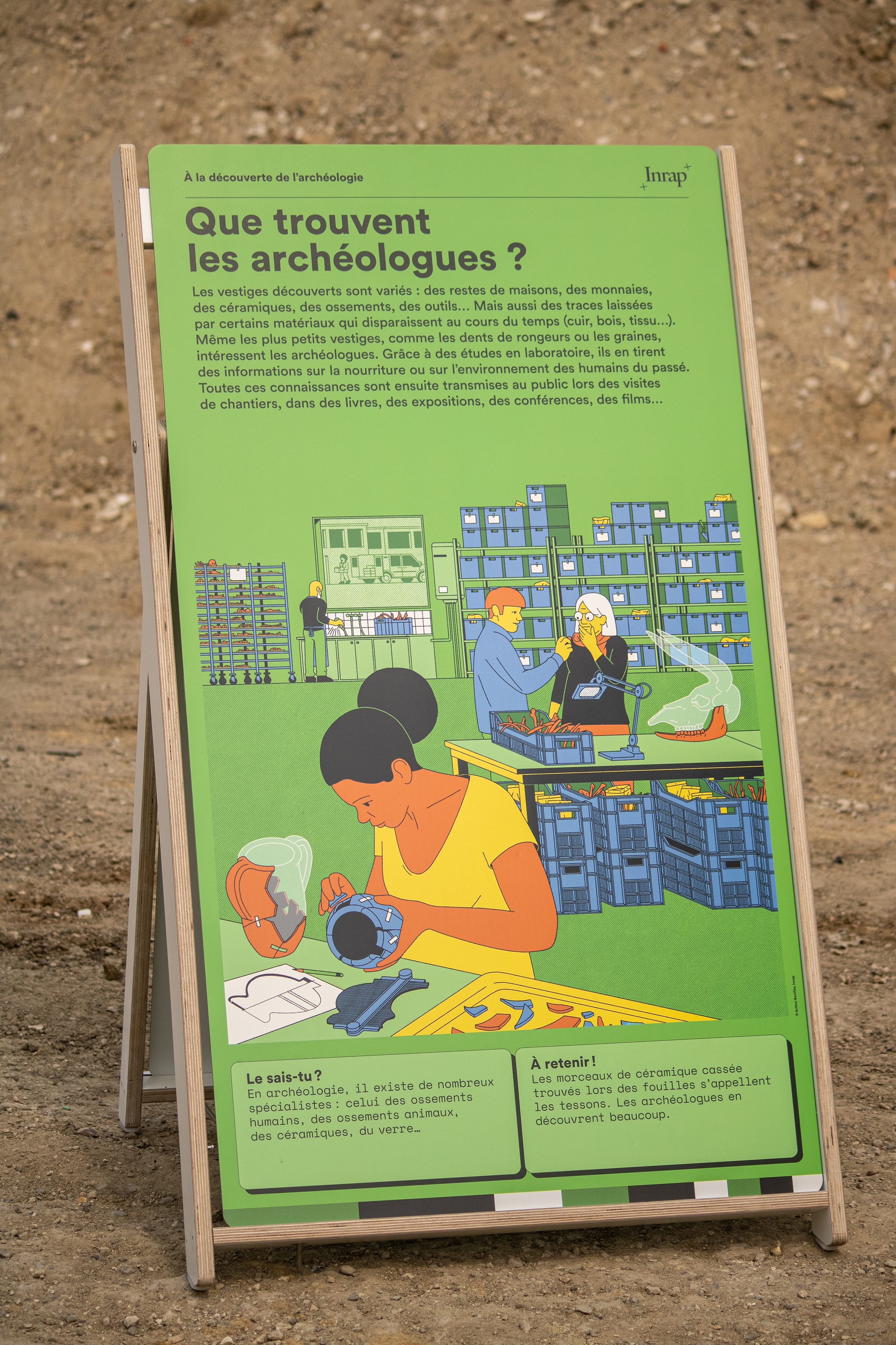 De panneau en panneau, du chantier au labo, on retrouve l’équipe d’archéologues imaginée par Arthur Bonifay.