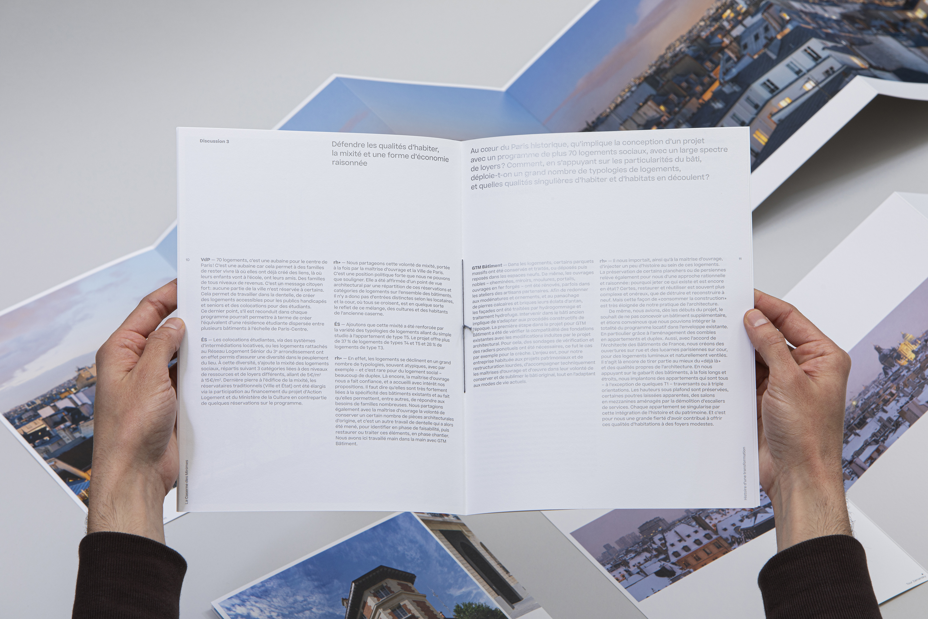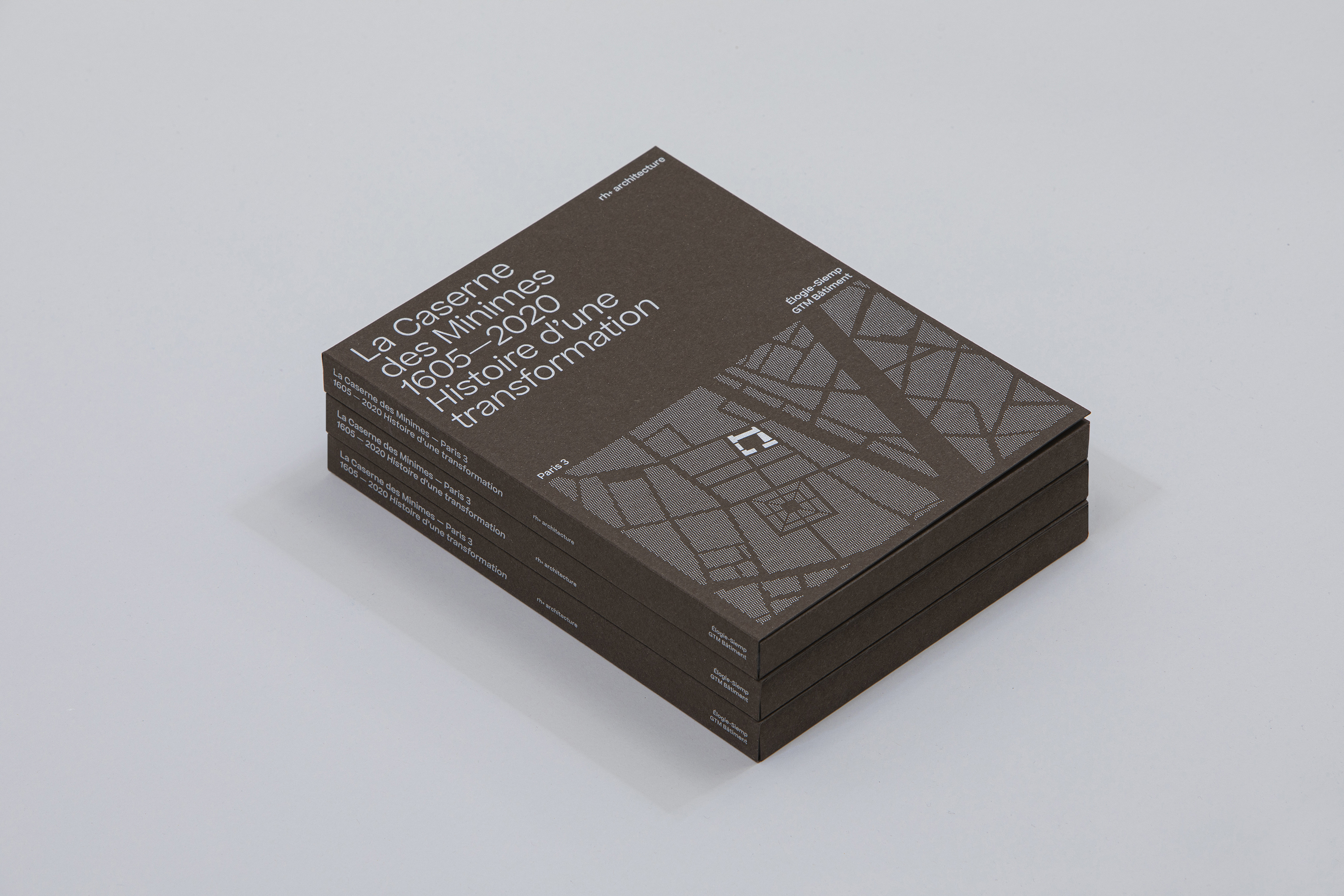 Les 20 ans de l’agence rh+ architecture coïncident avec la livraison d’un important chantier – celui de la Caserne des Minimes, au cœur du Marais. Pour marquer le coup, Alix Héaume et Adrien Robain nous demandent de concevoir un livre-objet retraçant l’histoire de cette réalisation, exemplaire de leur pratique architecturale.