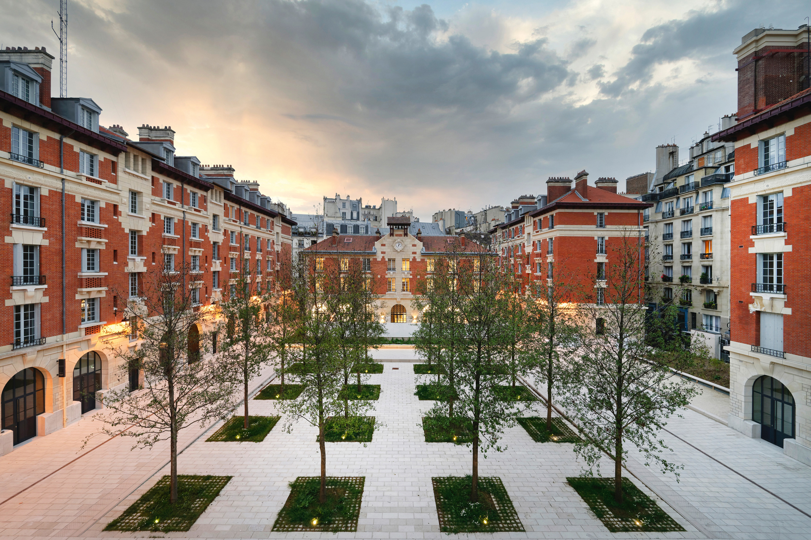 L’ancienne caserne de gendarmerie abrite désormais 70 logements sociaux, une crèche, des ateliers d’artisans et des commerces. Au centre de l’îlot, la place d’armes s’est muée en cour plantée, ouverte à tous. Photo ©Augusto Da Silva.