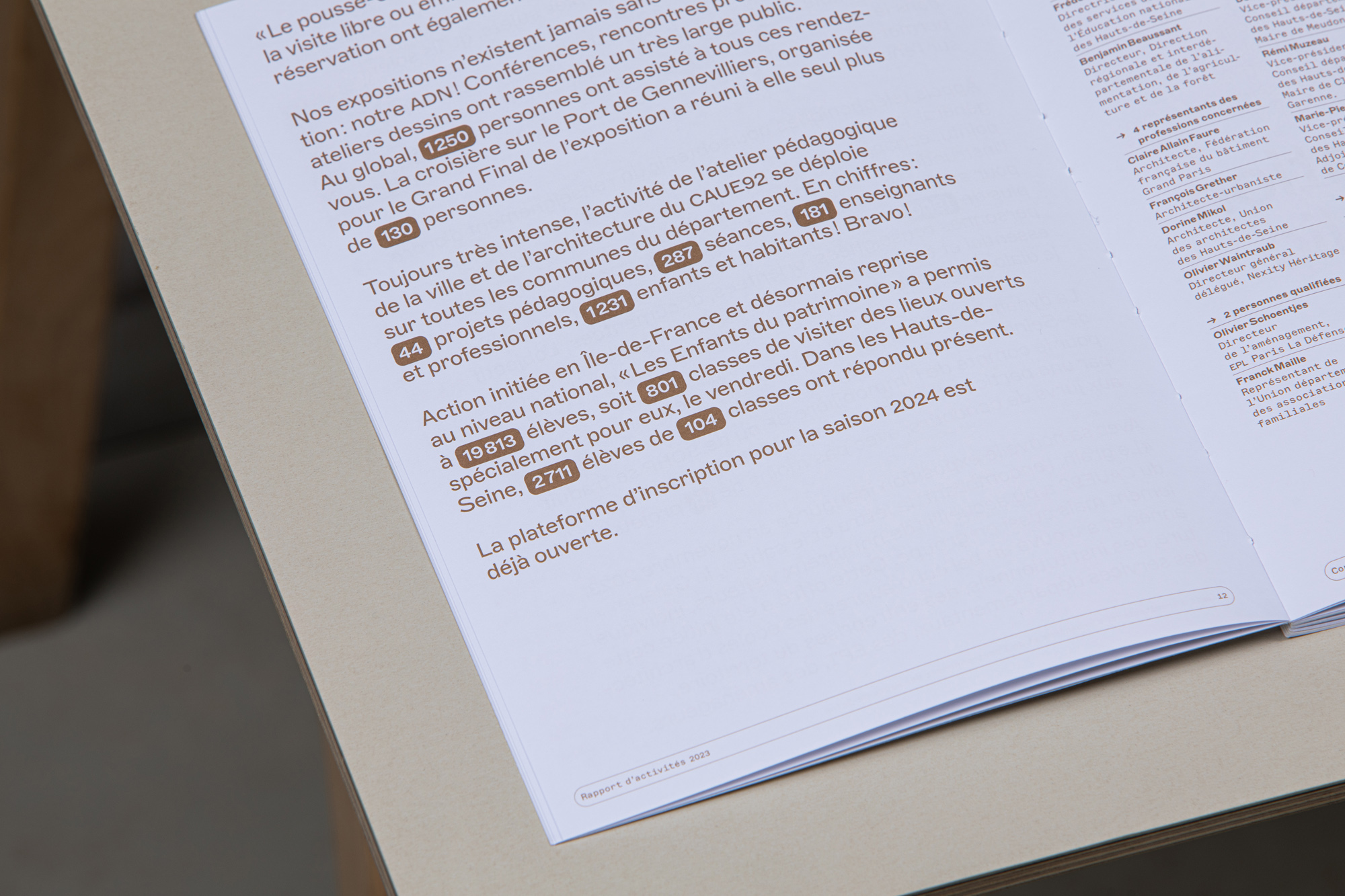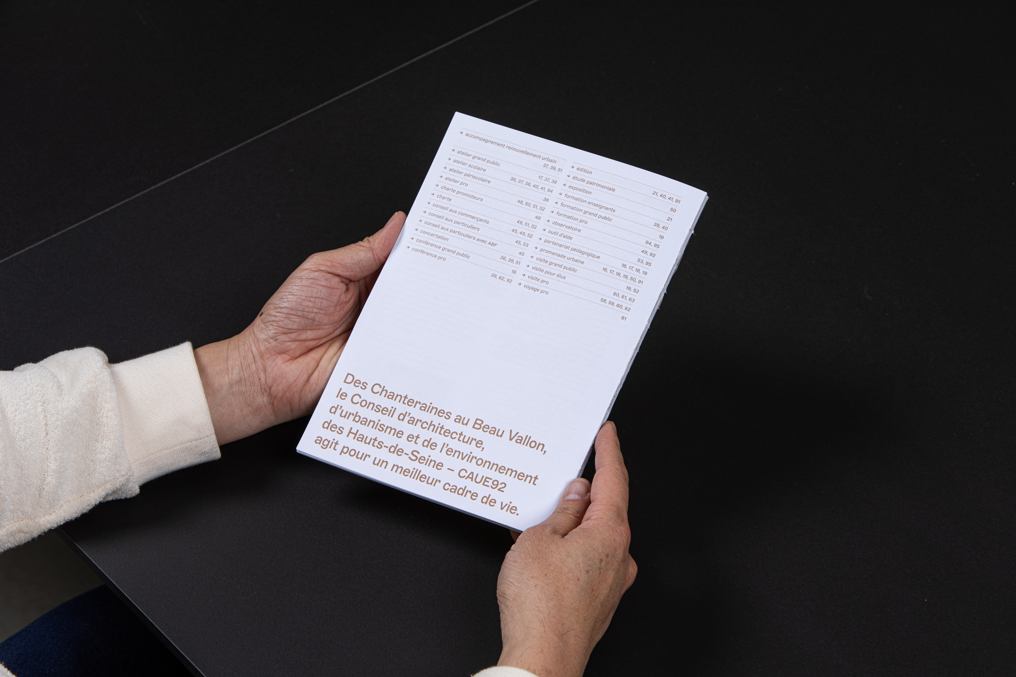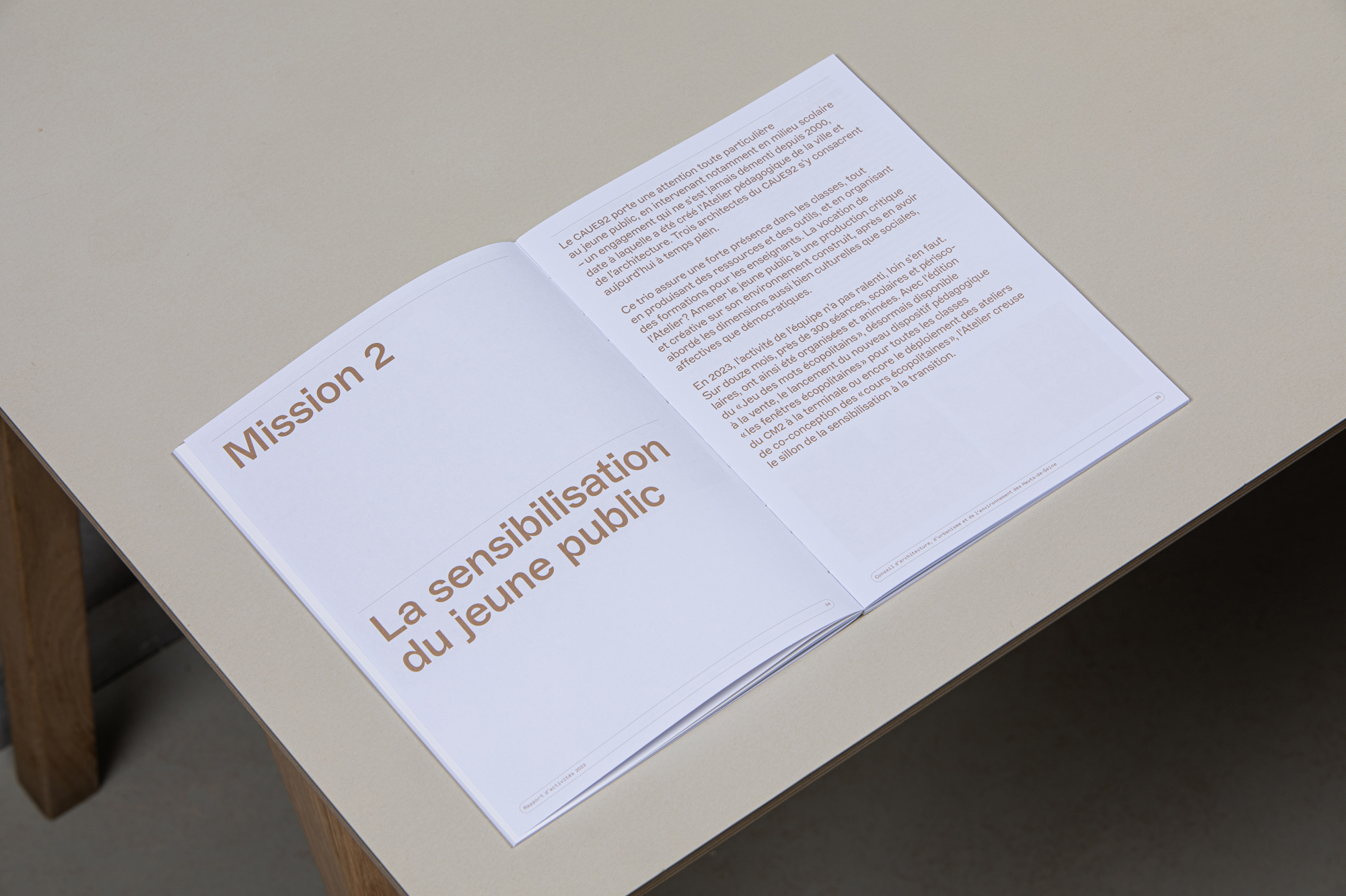 À travers une forme éditoriale plus aboutie, Sophie Thollot veut valoriser son équipe et réaffirmer le rôle du CAUE, nécessaire promoteur de la qualité architecturale et urbaine. Pour gagner en impact, nous lui proposons de réorganiser le document et de simplifier les hiérarchies.
