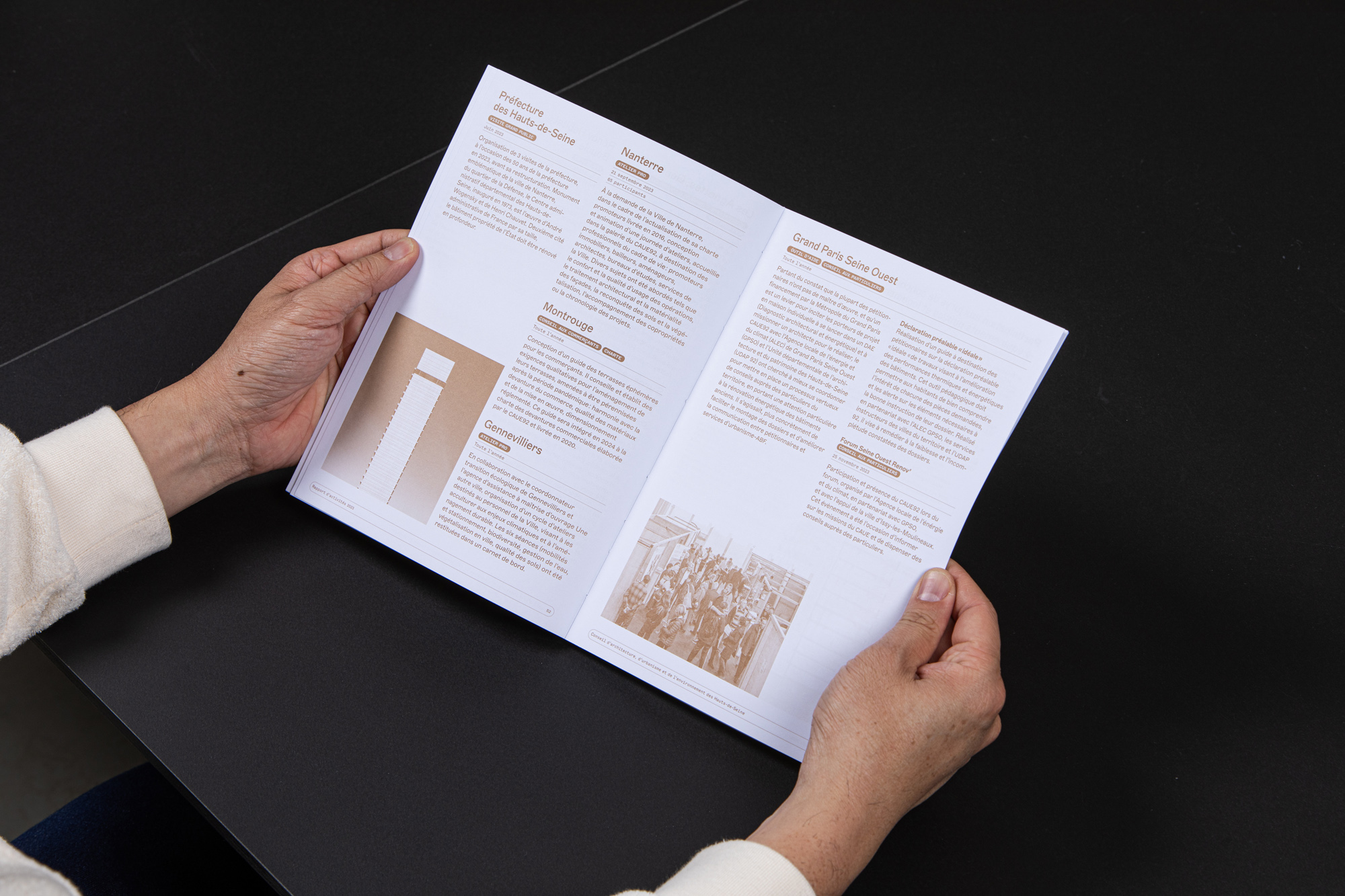 Sophie Thollot, directrice du CAUE92, nous repère par le biais de Mint, le zine que nous réalisons pour Fresh Architectures et pour lequel elle a signé une contribution. Elle a peu de temps pour mettre en forme le rapport d’activités de l’association, mais elle tient, cette année, à lui donner plus d’écho.
