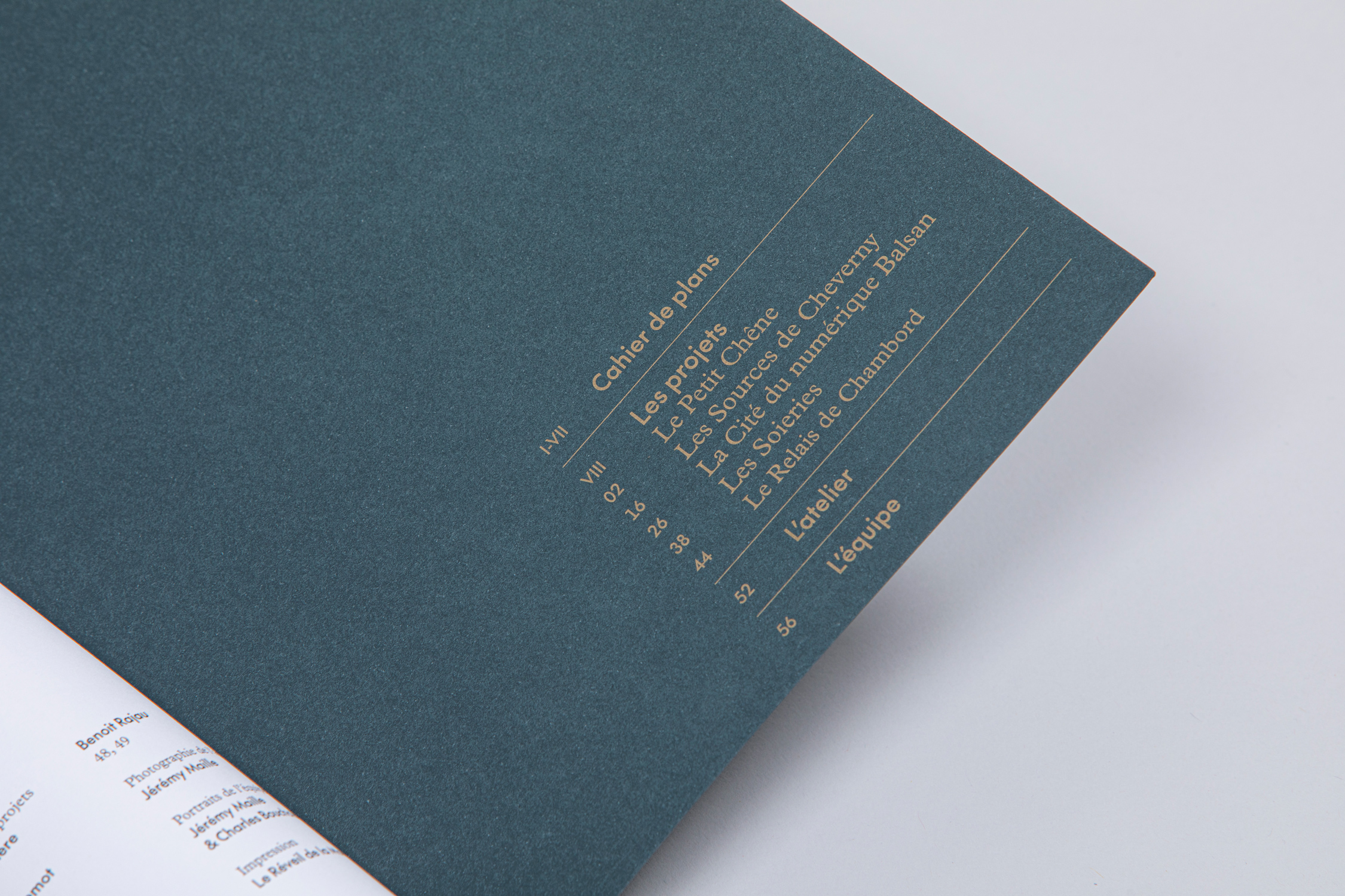 La combinaison des caractères Future et Plantin résonne avec leur écriture architecturale qui projette le patrimoine dans l’avenir.