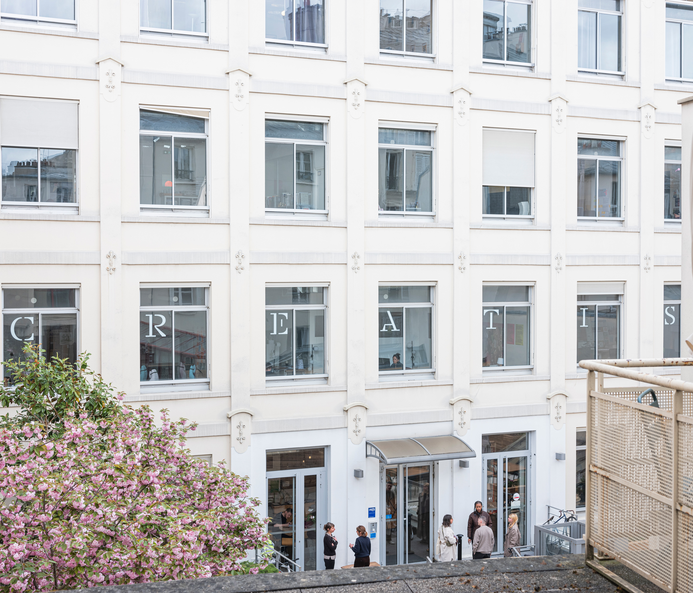 En fond de cour, une vitrophanie appliquée sur toutes les fenêtres de l’étage confirme au visiteur qu’il est bien arrivé à destination.