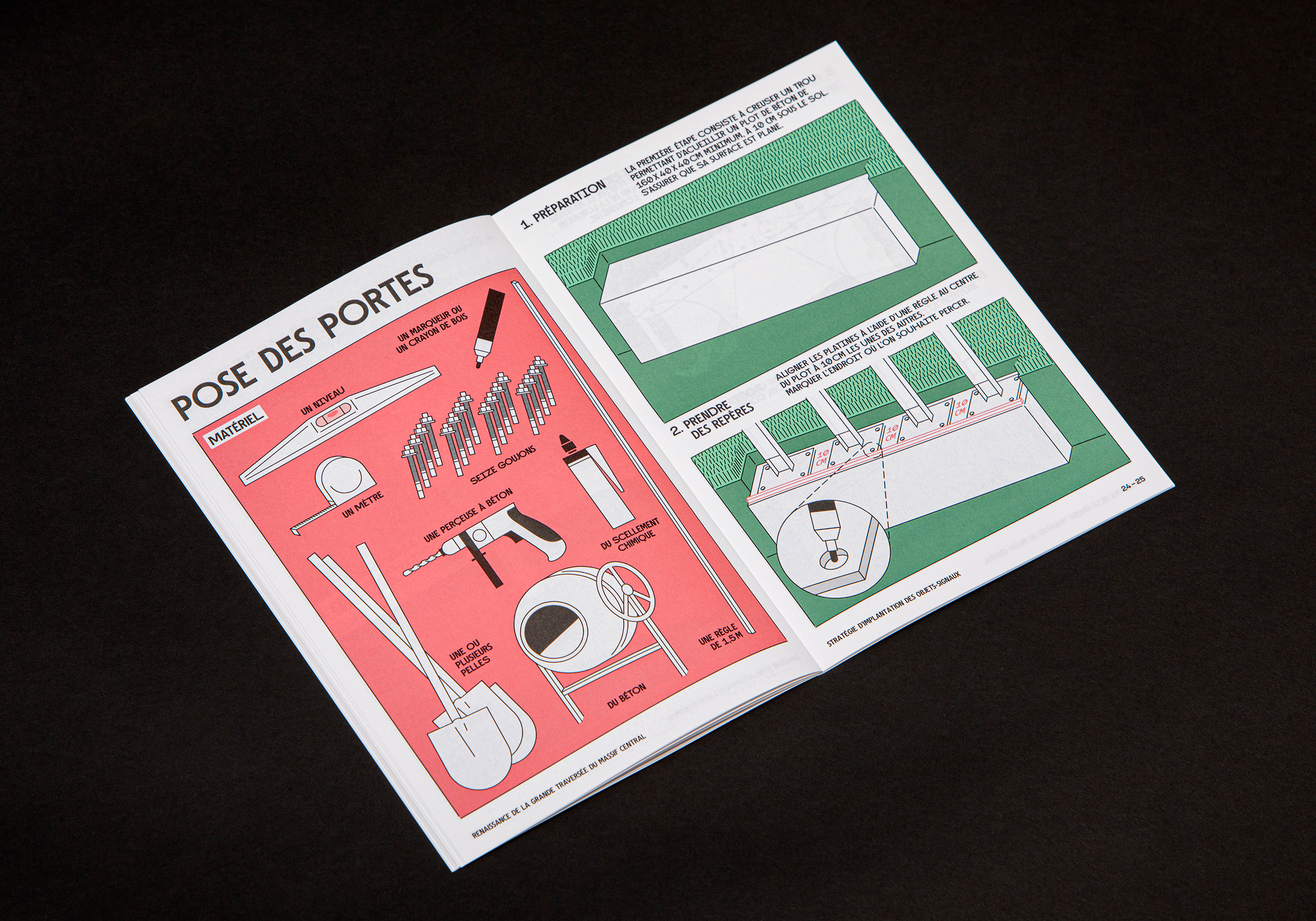 De nombreuses personnes sont impliquées dans la renaissance de la GTMC : maires, conseillers et employés municipaux, personnel des parc régionaux… Issu de nos rencontres sur le terrain avec tous ces acteurs, le design de la nouvelle signalétique anticipe son déploiement. Pour partager nos recommandations d’implantation et les instructions de pose des objets, nous rédigeons aussi un mode d’emploi.