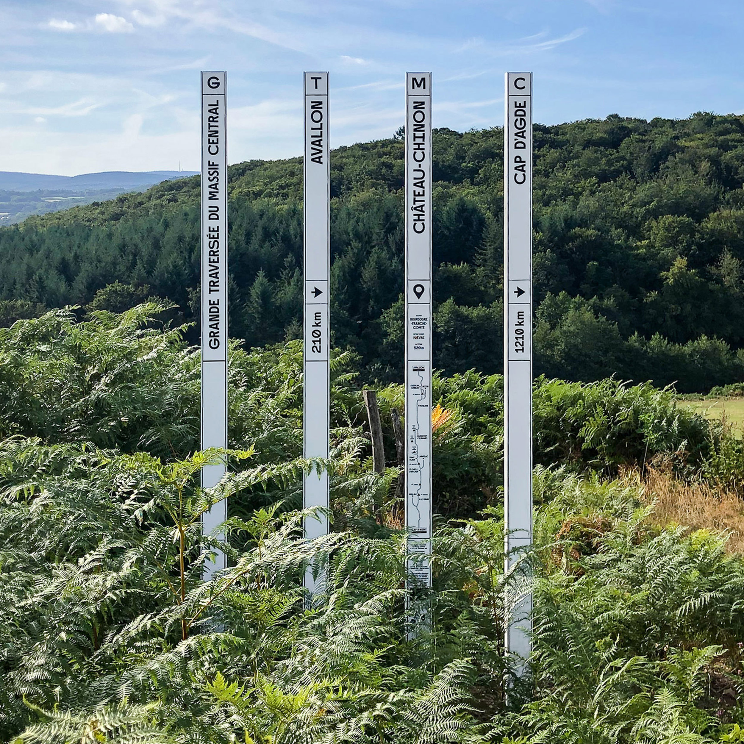 La Grande Traversée du Massif Central est bien connue des vététistes. Déclassé depuis plusieurs années, le parcours renaît grâce à l’Ipamac et à ses partenaires. Long de 1380 km, il commence désormais à Avallon, traverse le pays des volcans pour finir au Cap d’Agde. La signalétique que nous avons dessinée est la première manifestation physique de cette renaissance. Longue vie à la GTMC !