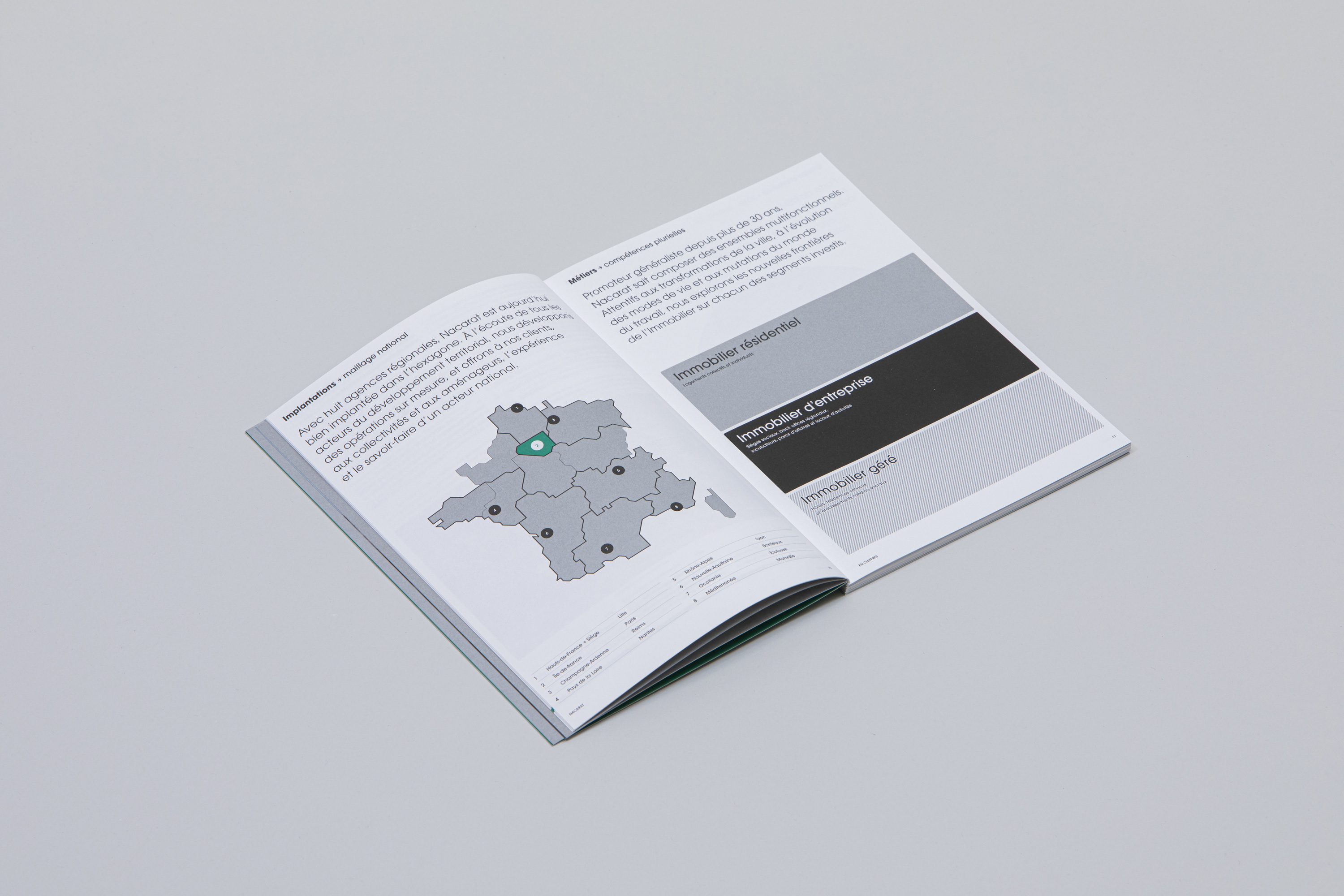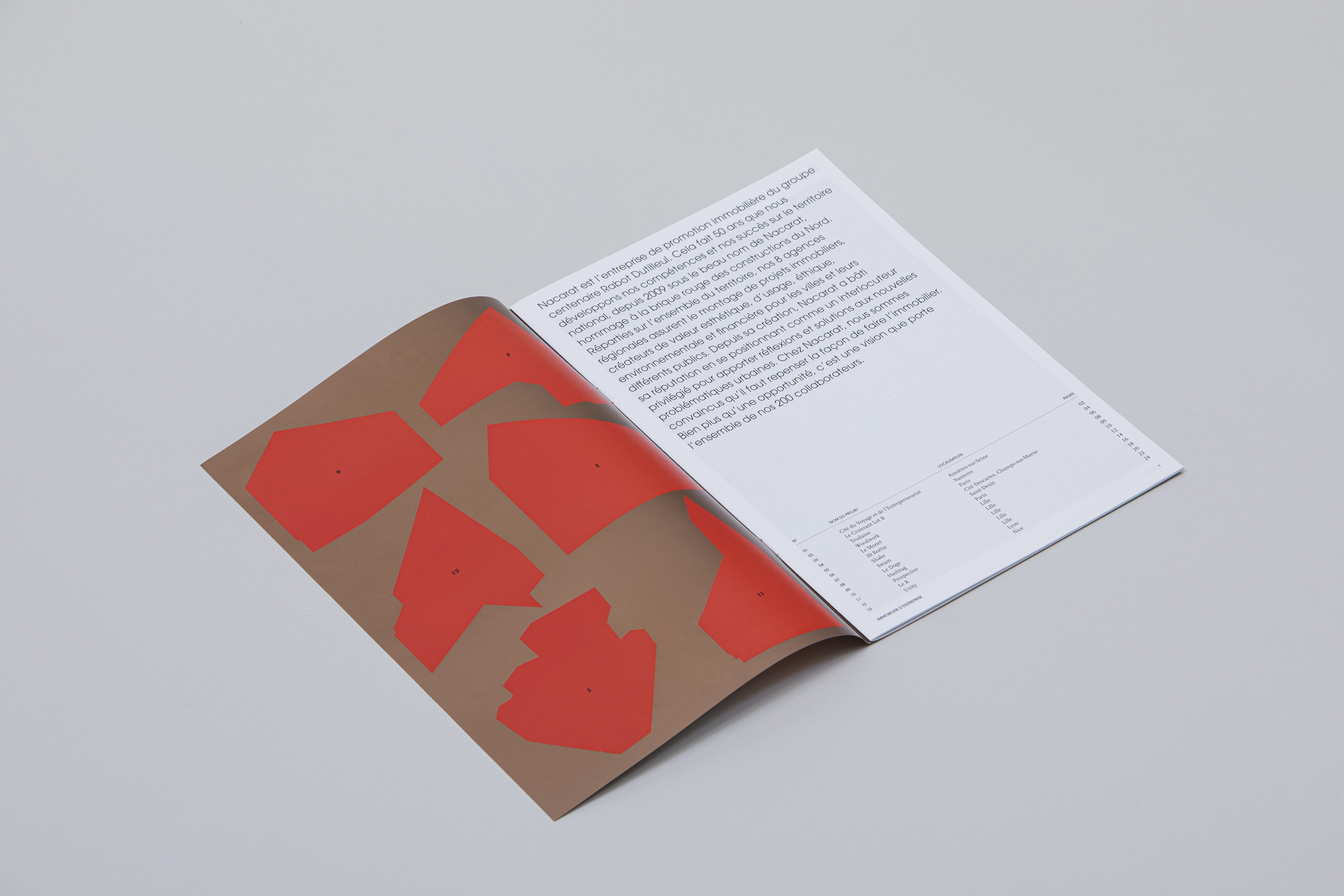 Nacarat Idf souhaite doter ses équipes de supports de communication spécifiques, à destination des élus. En étroite collaboration avec la direction du développement, l’objet éditorial que nous élaborons tient autant du portfolio que du magazine. Généreusement iconographié, il est facile à parcourir en situation de rencontre, tout en offrant matière à lire.