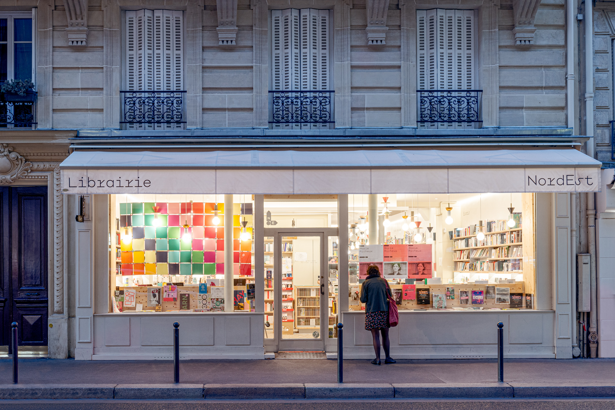 Marine Boutin-Etchecopar et Charline Vincent-Lucas reprennent avec panache les rênes de la librairie NordEst, rue de Dunkerque à Paris. Nouvel agencement, nouveaux mobiliers… Elles nous convient à participer à cette renaissance en repensant leur identité. Notre premier conseil est de conserver le nom de cette institution de quartier.