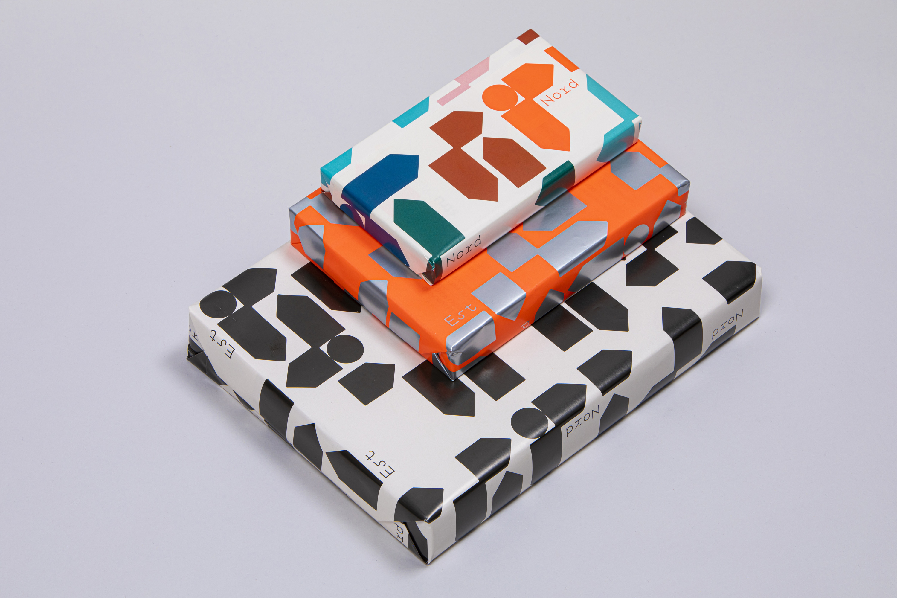La nouvelle identité se décline généreusement sur le papier cadeau, de la plus festive des parures à la plus calme.
