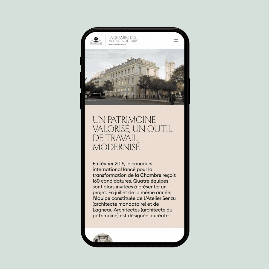 Nous livrons les deux supports en trois semaines. Réunis au théâtre du Châtelet, les quelques 2500 notaires du Grand Paris re-découvrent le projet et votent à plus de 70% en faveur du budget. La mue du bâtiment emblématique de la confrérie peut commencer.