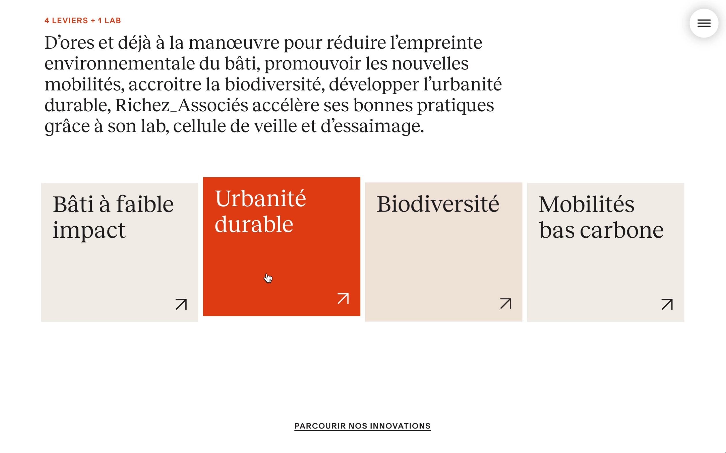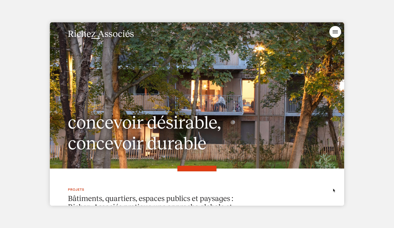 Le temps de lecture est compté sur internet. Nous proposons d’entrer dans l’univers de Richez Associés par une rapide traversée verticale qui résume l’essentiel de l’agence et invite à poursuivre la découverte.