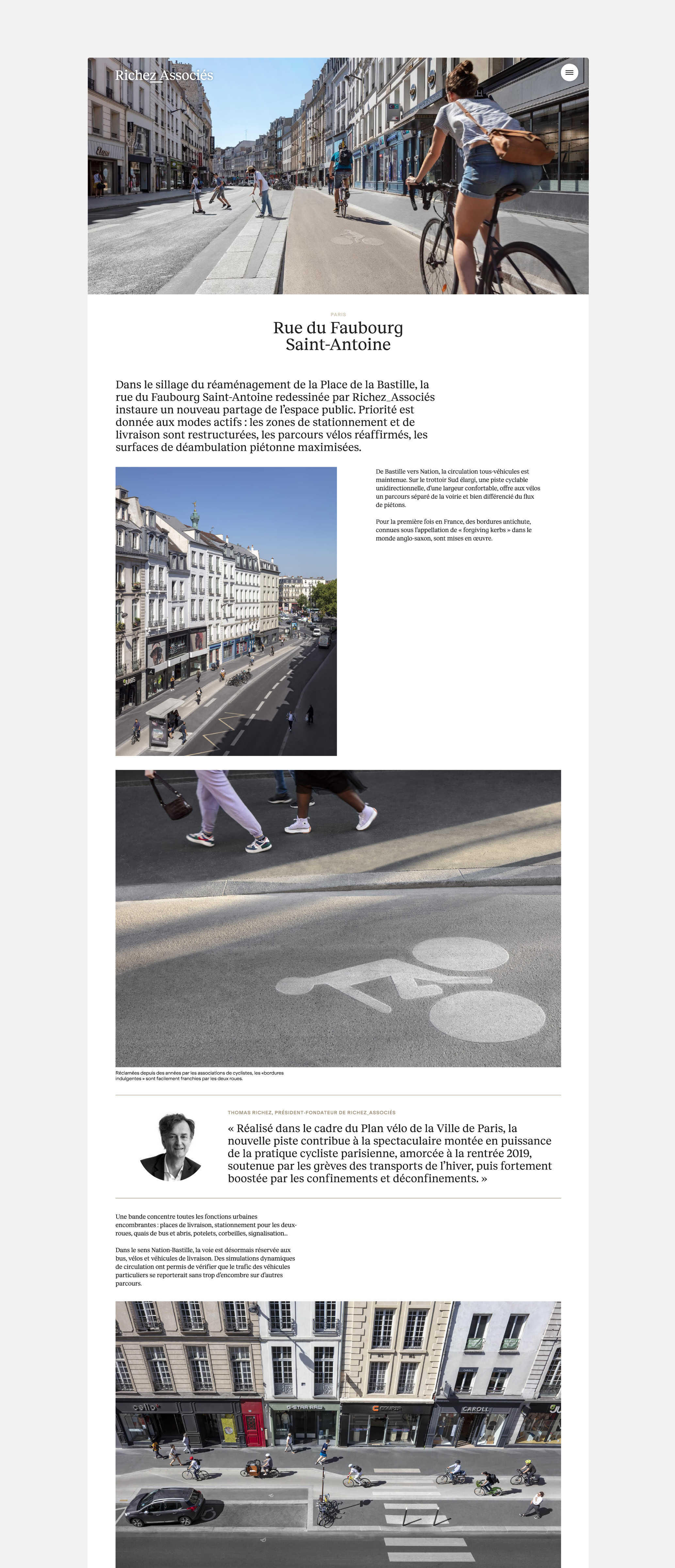 Dans le classement de tête des agences françaises, Richez Associés, connue pour ses aménagements de lignes de tramway, a bien d’autres atouts dans son jeu. Plus que trentenaire, l’agence est en pleine mue. Des champs d’action ont été identifiés, un lab interne a été créé, un manifeste a été rédigé, de nouveaux associés sont attendus. Il était temps que le site internet reflète cette dynamique.
