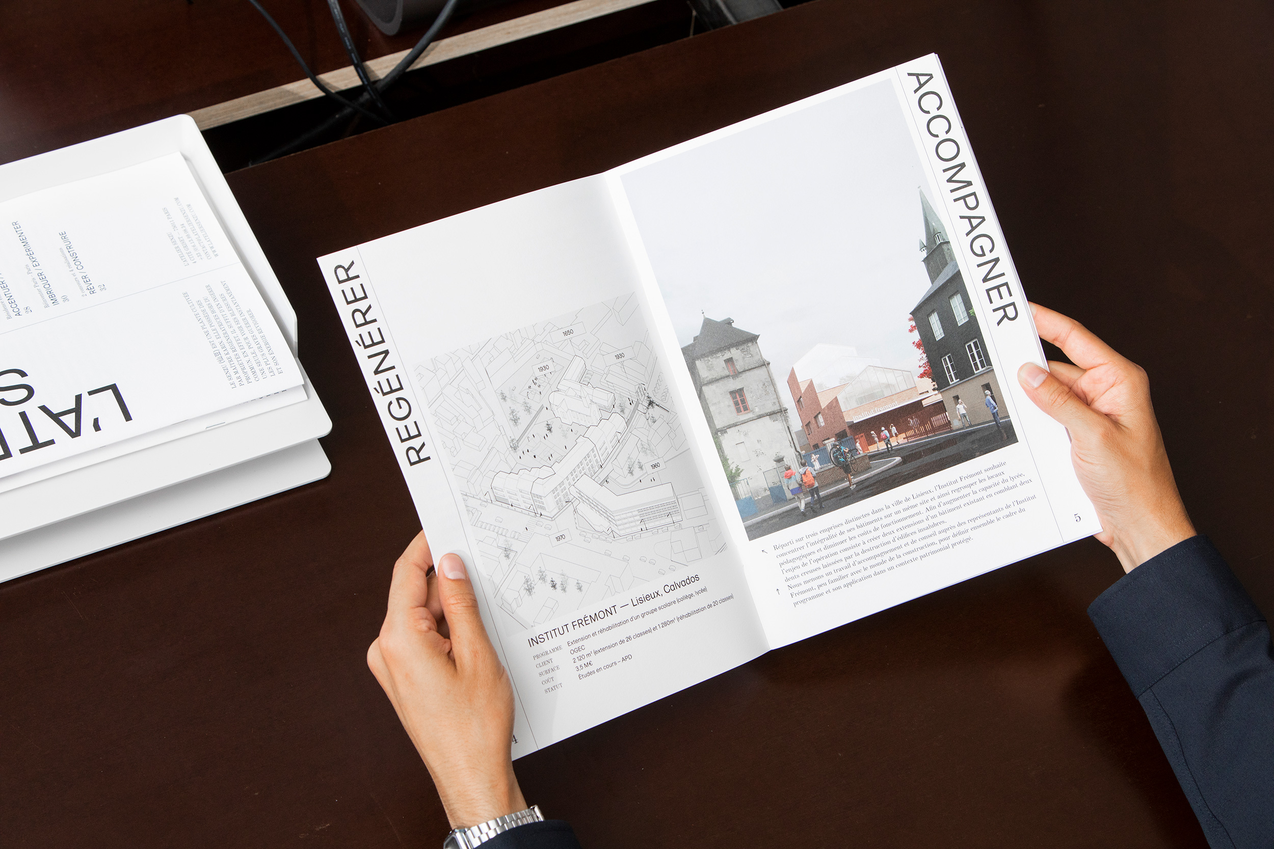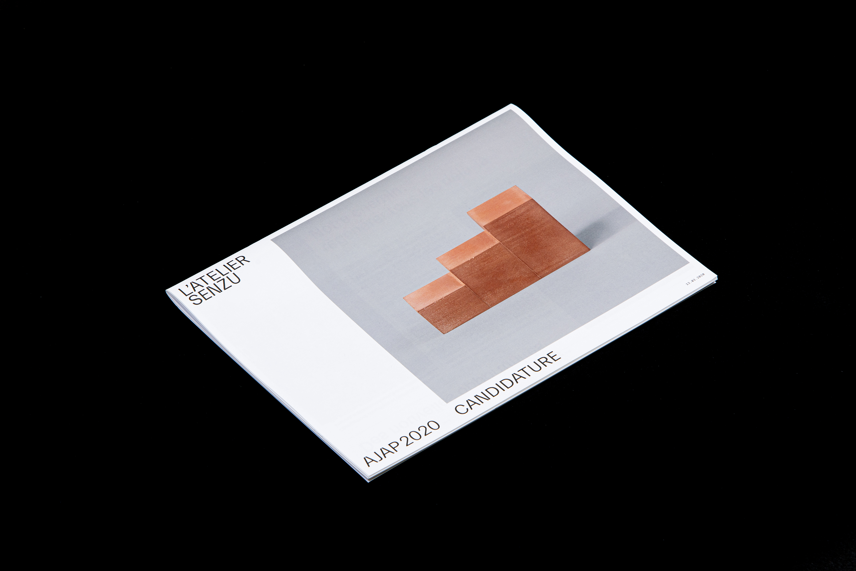 En 2018, l’Atelier Senzu nous demande de concevoir un cahier de 32 pages pour candidater aux AJAP. Ce prestigieux concours, organisé par le ministère de la Culture et de la Communication, sert de tremplin aux jeunes agences françaises d’architecture et de paysage. Bien que la qualité de l’édition soit relevée par le jury, elle présente un assemblage hétéroclite de projets qui traduit mal la singularité de l’agence.