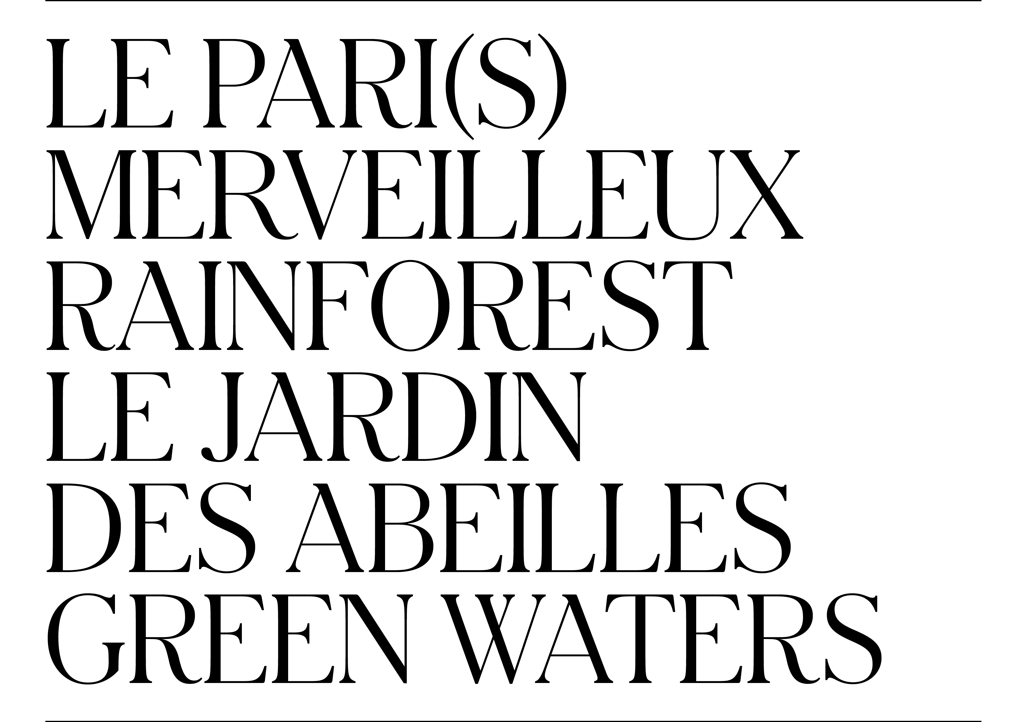 La Schnyder est employée pour les titres et les exergues. Cette typographie, inspirée des caractères XIXe, rattache le travail de Patrick Nadeau à la tradition botaniste.
